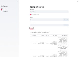 You can find the code for both the dashboard and the API in the python-scripts/demo subdirectory of my sujitpal/vespa-poc repositories. I have separated the functionality of the application into its own “package” (demo_utils.py) so that it can be used from both Streamlit and FastAPI.