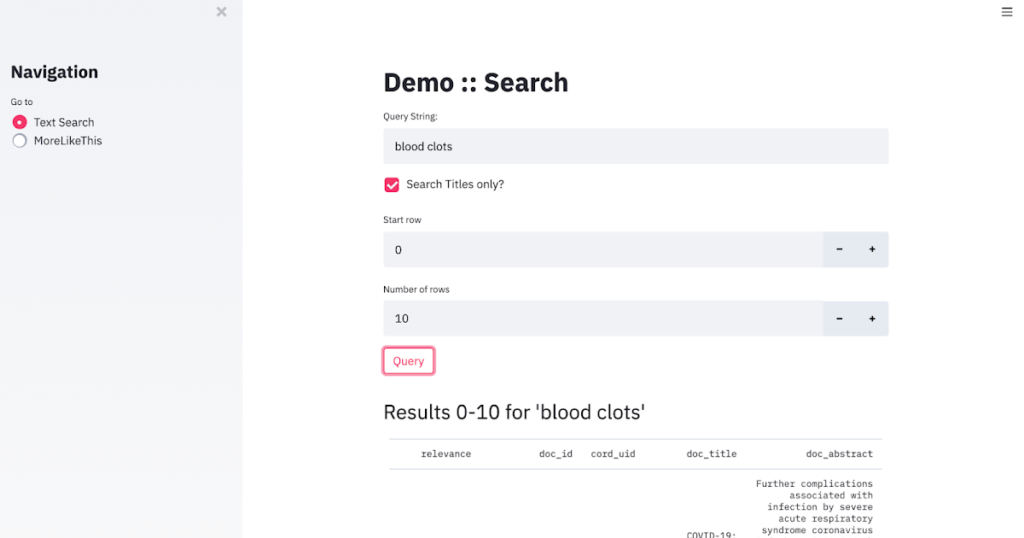 I often feel that a full application is unnecessary. For example, my game application performs a text search against the CORD-19 dataset, and a MoreLikeThis-style vector search to find similar papers for a given paper. A custom application not only needs to demonstrate individual features, but also the interactions between these features. Of course, these are just two properties, but you can see how it can get complicated quickly. However, most of the time, your audience is just trying to test your features with different inputs and have the imagination to see how it all fits together. A web app is just a convenient way for them to do the first.